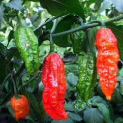 Eine der schärfsten Peperoncini der Welt. < 1 Mio. Scoville. Stammt aus dem Nordosten Indiens. Fruchtig aromatisch würzig. Länglich, mal schrumplig, mal glatt. Sehr wärmebedürftig, lange Reifezeit.