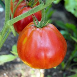 200-300g schwere gerippte birnenförmige Frucht, sehr produktiv und robust, ausgeprägtes Tomatenaroma, wenig Saft, etwas hohl, für Saucen und gefüllte Tomaten, Herkunft: Ligurien (Italien).