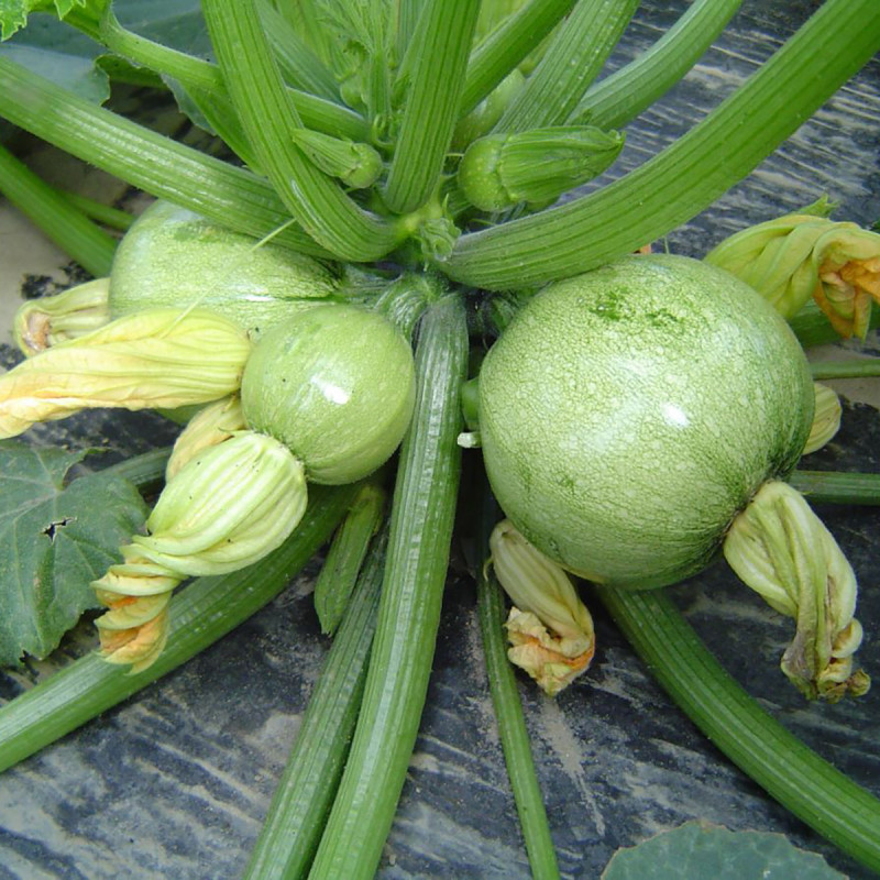 Kleine runde grüngelb marmorierte Früchte, ernten bis 10cm Durchmesser, zum Füllen geeignet