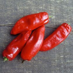 Kleine buschige Pflanze mit etwa 8cm langen mittelscharfen Früchten, stammt aus dem mittleren Ostfrankreich