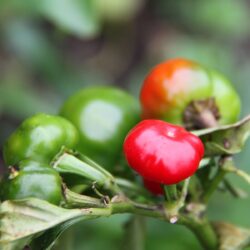 Kräftige, für Topf geeignete Pflanze mit bis zu 4cm dicken rundlichen mittelscharfen Früchten.