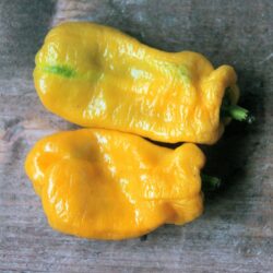 Schöne gelbe Früchte, bis 20cm lang, sehr süss, gute Lagerfähigkeit, Pflanze bis 60cm hoch.