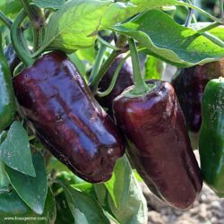 Längliche schokoladenfarbene Früchte bis 12cm, leicht süsser Geschmack mit einem Hauch von Würze, robuste Pflanze