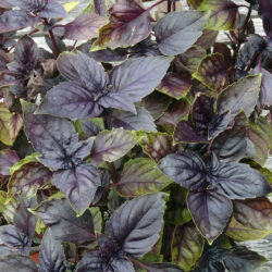 Dunkelrote Variante des Genoveser Basilikums, Blätter jedoch etwas gesägt.