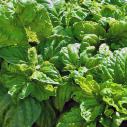 Salatblättriges Basilikum („Neapolitano") mit grossen hellen Blättern und pfeffrigem Aroma