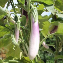 Italienische milde Sorte mit schlanken weissen Früchten und teils rosaroten Flecken, ohne Bitterstoffe, lässt sich jung auch roh essen