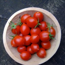 Die Tomate des Vesuvs! Aromatische Früchte von 15-20g, teilweise etwas dickschalig mit leichtem Spitz, lagerfähig.